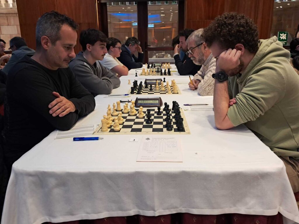 Emocionante ronda final de temporada. Solvay B jugaba contra Salcedo B por el primer puesto. Aunque ninguno de los dos equipos puede ascender de categoría, la alineación de Salcedo, indicaba que era importante, con 4 jugadores invictos hasta esta última ronda. Por nuestra parte, mantuvimos nuestro sistema de rotaciones, y la confianza en los jóvenes valores. Pronto el match se puso muy favorable porque Victor “cazó” la dama de su rival, dando el primer punto para los nuestros. Le siguió Manu en una excelente partida táctica, derrotando a un jugador como José Luis Prellezo que llevaba una trayectoria intachable con 9 puntos en 9 partidas, combinando división de honor con la primera división. Mario le siguió con unas tablas en una partida incierta y le siguió su hermano Borja en el primer tablero. Ambos contra rivales de gran nivel que terminan invictos esta temporada. Por último, Laura no pudo redondear la tarde, a pesar disputar una buena partida de ataque con enroques opuestos. El módulo llegó a marcar +5 pero no encontró las jugadas precisas y acabó perdiendo. Resultado final 3-2 y primer puesto del grupo B de primera. Excelente temporada con buenas aportaciones de todos los miembros, incluyendo 3 jugadores promocionados del equipo de segunda que acabaron invictos: Elena 1.5/2, Adolfo y Pau con una partida disputada, y ganada, cada uno.