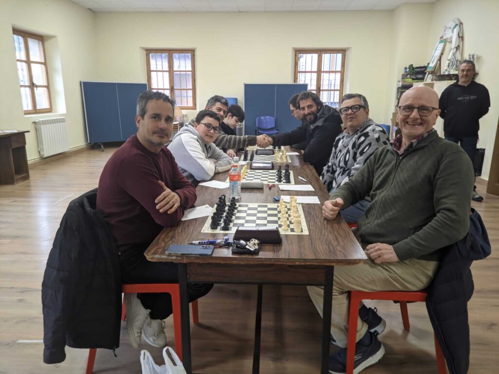 Tras ganar a Piélagos B por 3-2 nuestro primer filial se jugará el campeonato del grupo B de primera en la última ronda. El marcador acabó más ajustado de lo que parecía en un principio. El equipo tomó ventaja pronto con victorias de Santi y David y las tablas de Borja. Francisco consiguió unas tablas en posición compleja y Mario no pudo puntuar en un final de torre y peones que parecía igualado. Una victoria en la última ronda ante el líder, Salcedo B, nos daría el campeonato tras una excelente temporada.